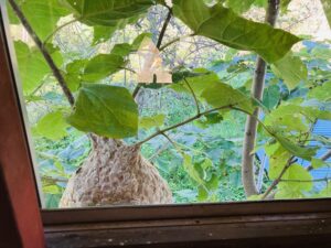 見にいくと30センチはある巨大な蜂の巣💦