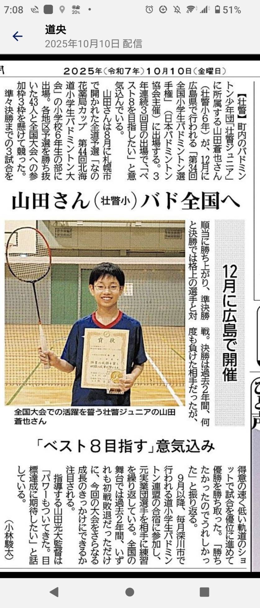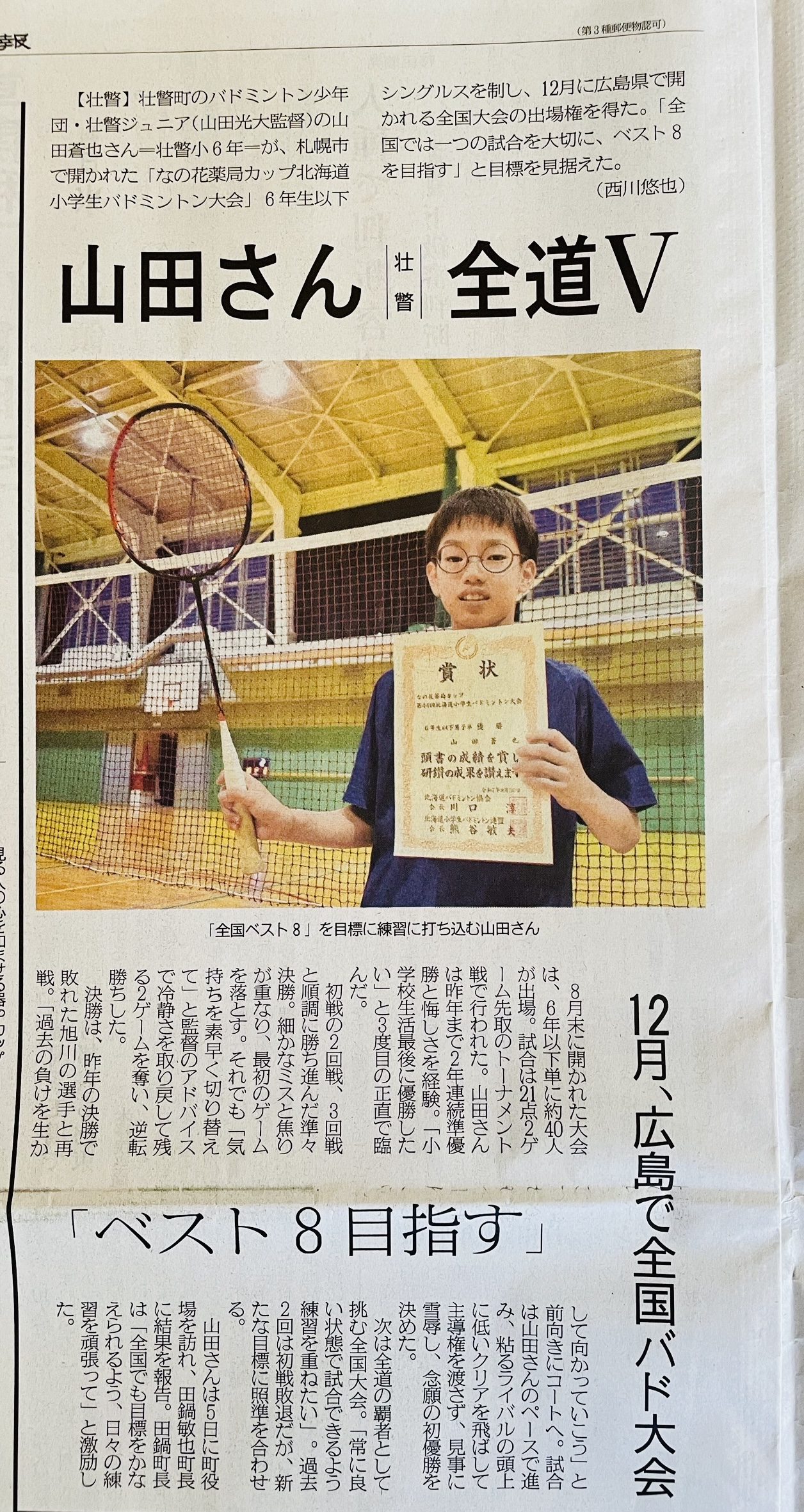 先日全道優勝を遂げた息子が北海道新聞と地元紙室蘭民報に掲載されました。