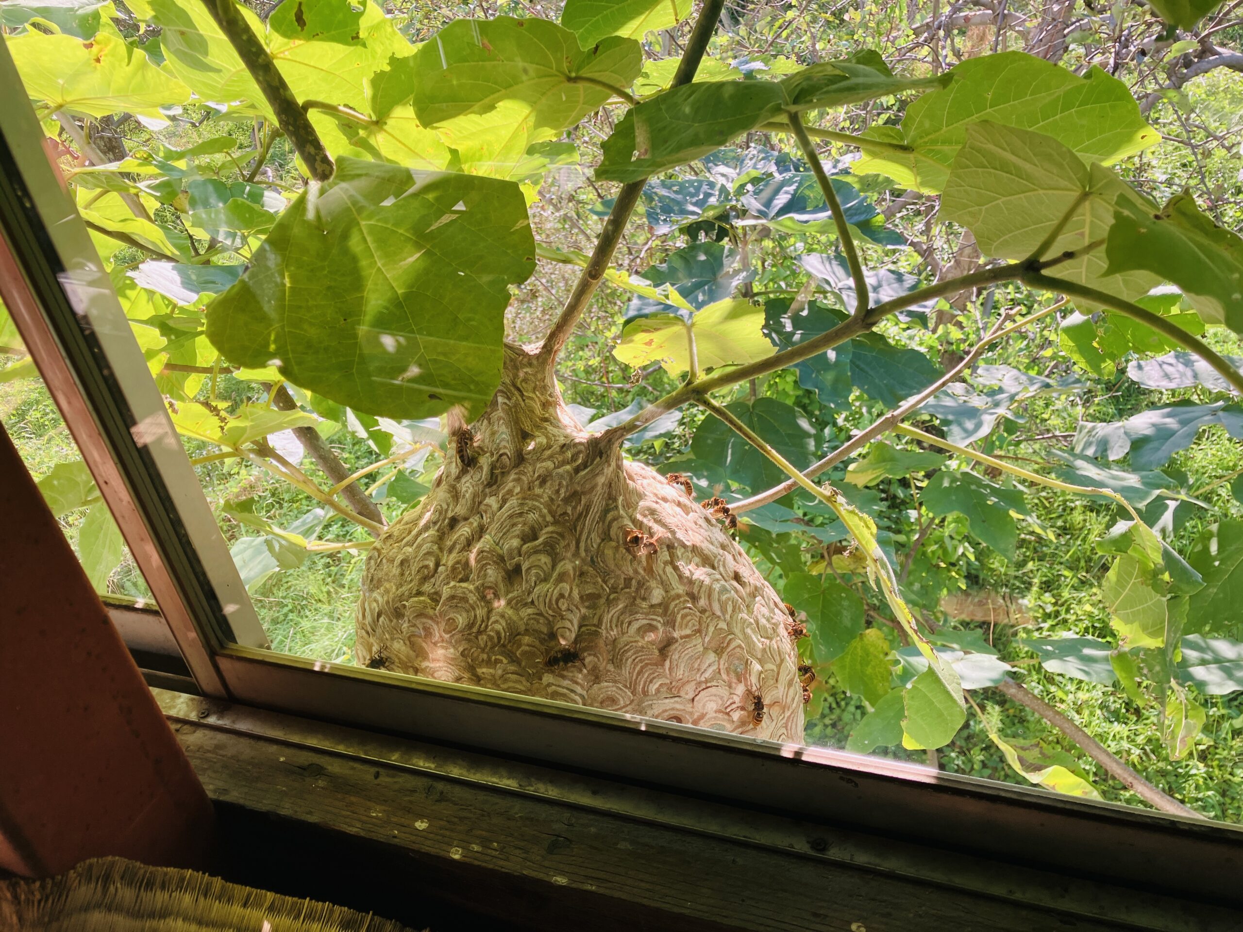 見にいくと30センチはある巨大な蜂の巣💦