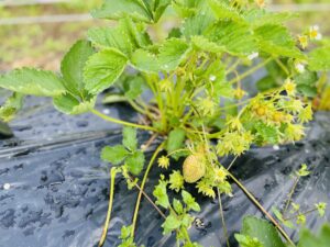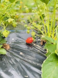 少量ですが赤くなったイチゴも発見!