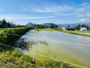 フキなどが伸びて電牧に触れて閉まっていると漏電してしまうため刈らないといけません。