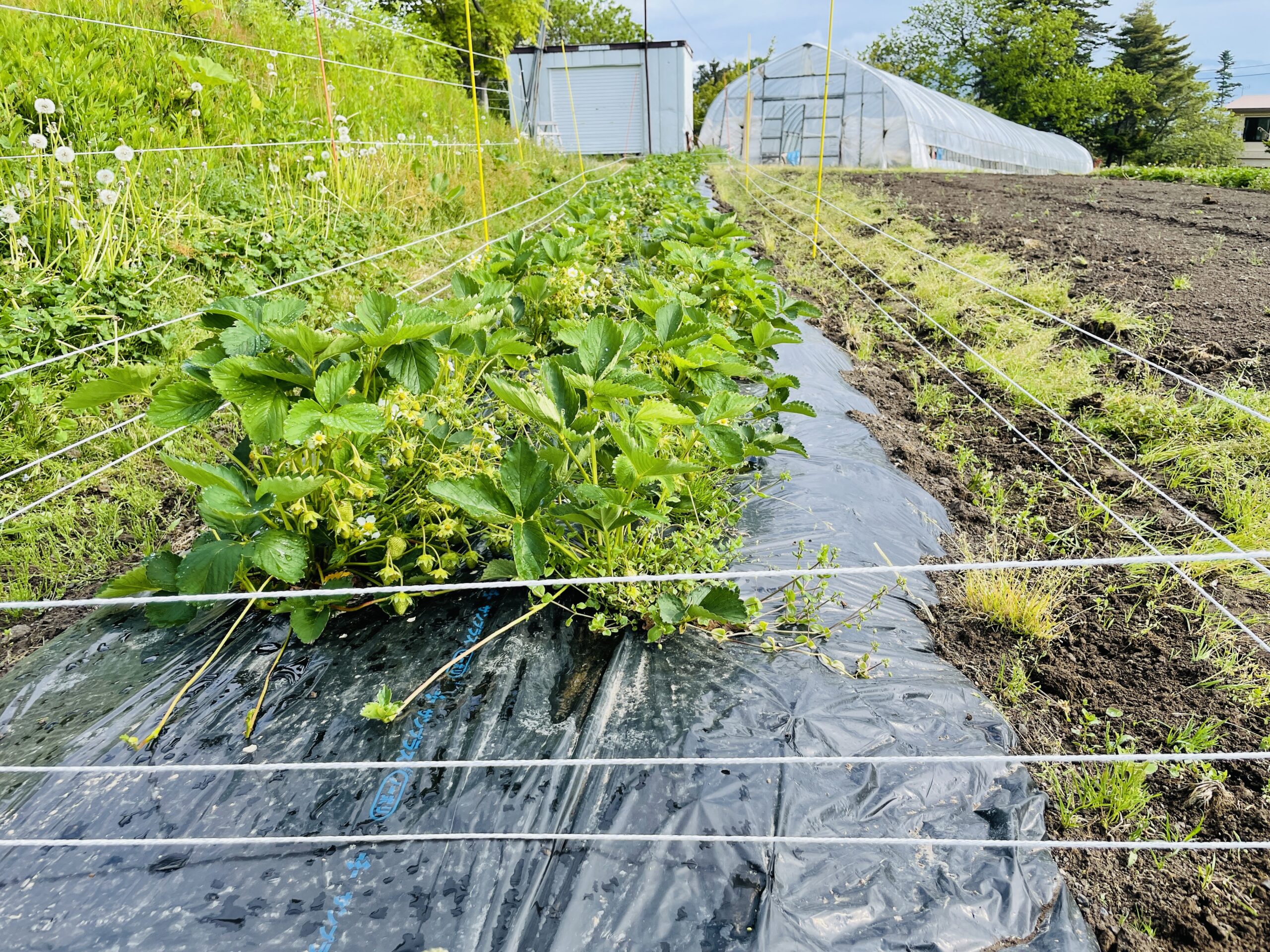 イチゴ周りもしっかりと電牧を張り草も刈りました!