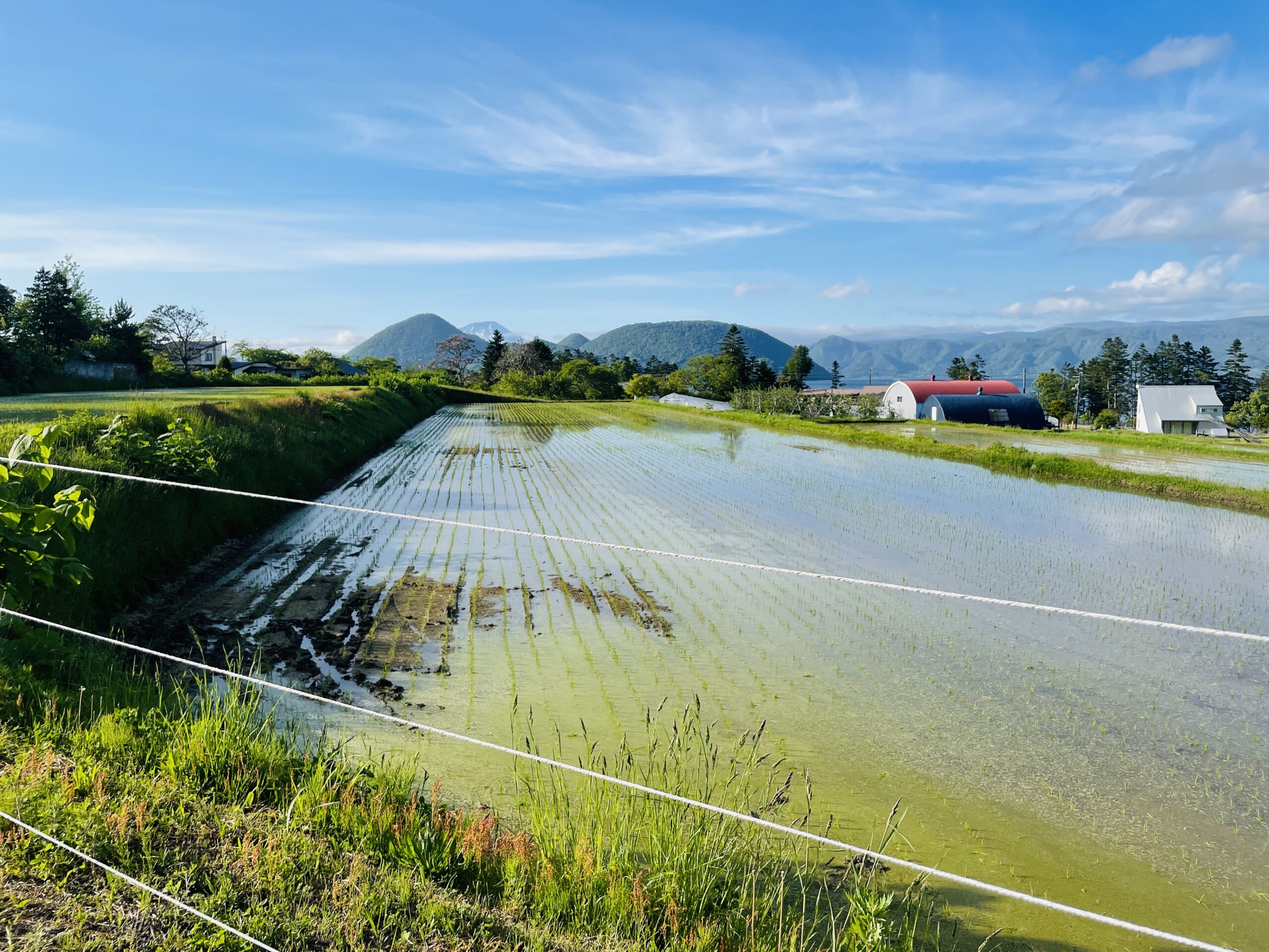 壮瞥町は暖かくなってきました!旅館裏ではイチゴも美味しそうに赤くなってきました〜!今年も野生動物から守るために電牧を張って死守します