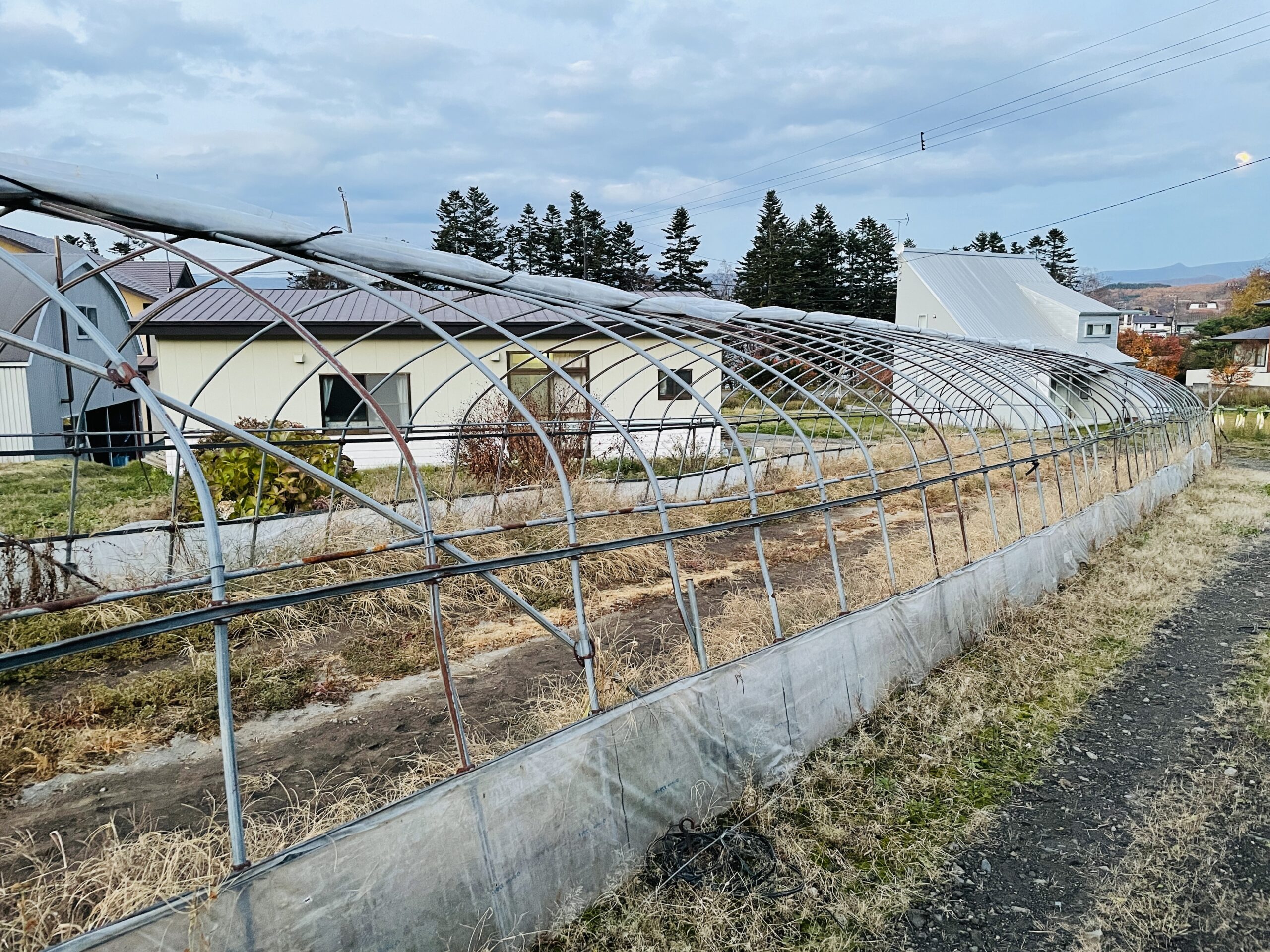 撤去中にこのハウスの骨組みも歪んでいる場所があったりハウスのビニールも一部破けていたりと年季を感じていました。。