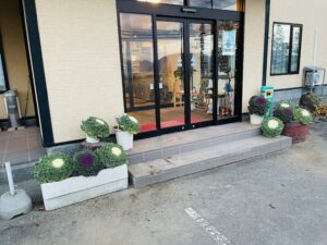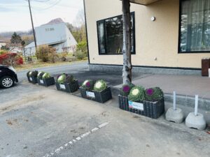旅館前に葉牡丹を植えました。玄関前の雰囲気がすっかり変わっています。壮瞥町の冬が始まります!!
