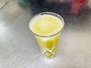 収穫後に息子の念願であったリンゴをジューサーにかけてリンゴジュースを作りました。