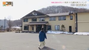 入ってきたアナウンサーが挨拶をして旅館に入ってくる。